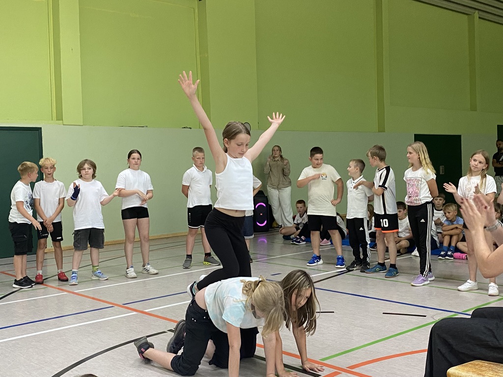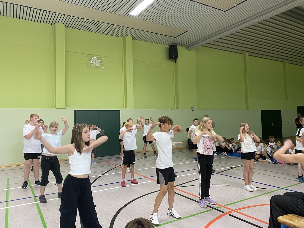 Der Höhepunkt der Woche war die große Abschlussaufführung, bei der die Kinder das Erarbeitete voller Stolz ihren Familien und Mitschülern präsentierten. Mit mitreißenden Tänzen, spannenden Choreografien und strahlenden Gesichtern zeigten sie, was in ihnen steckt – ein unvergesslicher Moment für alle Beteiligten!
