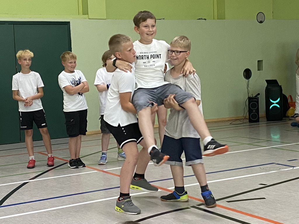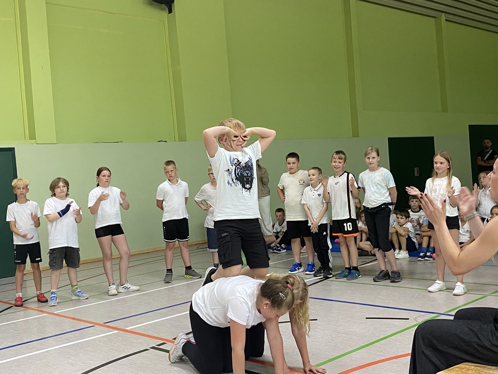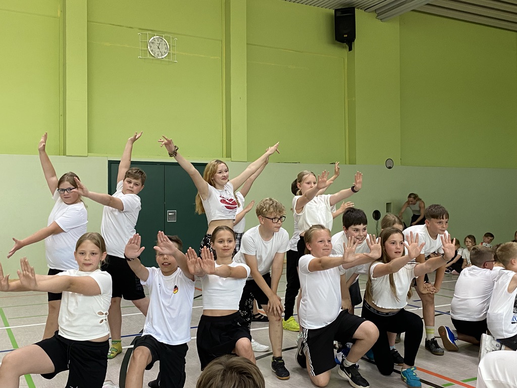 In klassenübergreifenden Gruppen wurde gemeinsam getanzt, gesungen, gespielt und gelacht. Jedes Kind brachte sich mit viel Begeisterung ein, lernte neue Bewegungsformen kennen und wuchs in der Gruppe über sich hinaus. Dabei stand nicht nur die körperliche Aktivität im Vordergrund, sondern auch Teamarbeit, Selbstbewusstsein und Freude an der Bewegung.